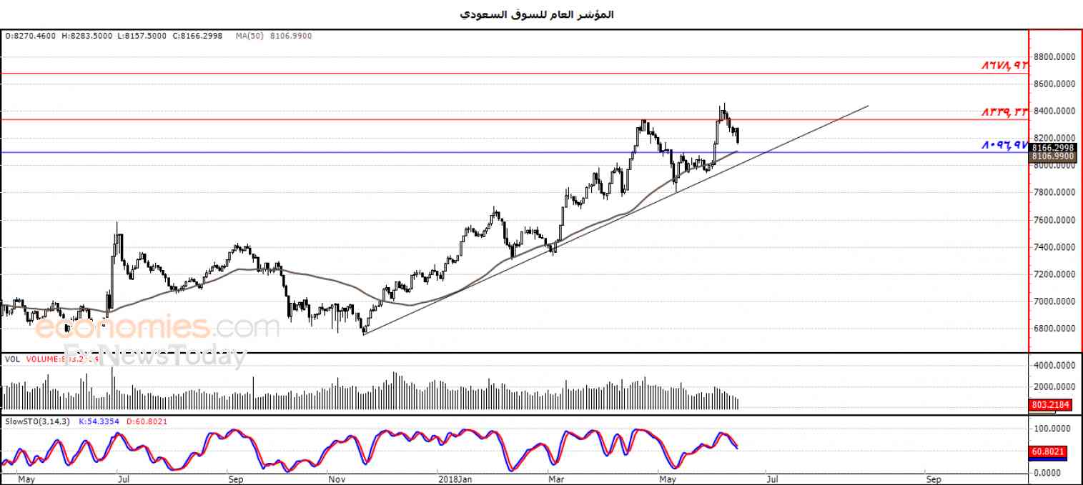 نطاق التداول المتوقع لهذا اليوم ما بين مستوى الدعم 8096.97 ومستوى المقاومة 8339.33 .