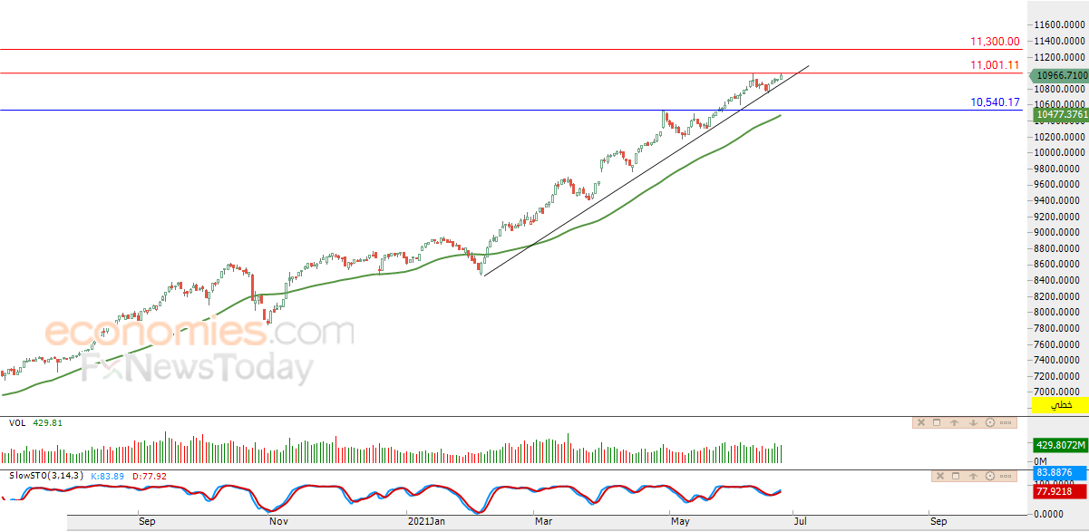 لهذا نحن نتوقع المزيد من الصعود للمؤشر خلال تداولاته القادمة، خاصة في حالة اختراقه للمقاومة 11,000، ليستهدف بعدها مستوى المقاومة 11,300.