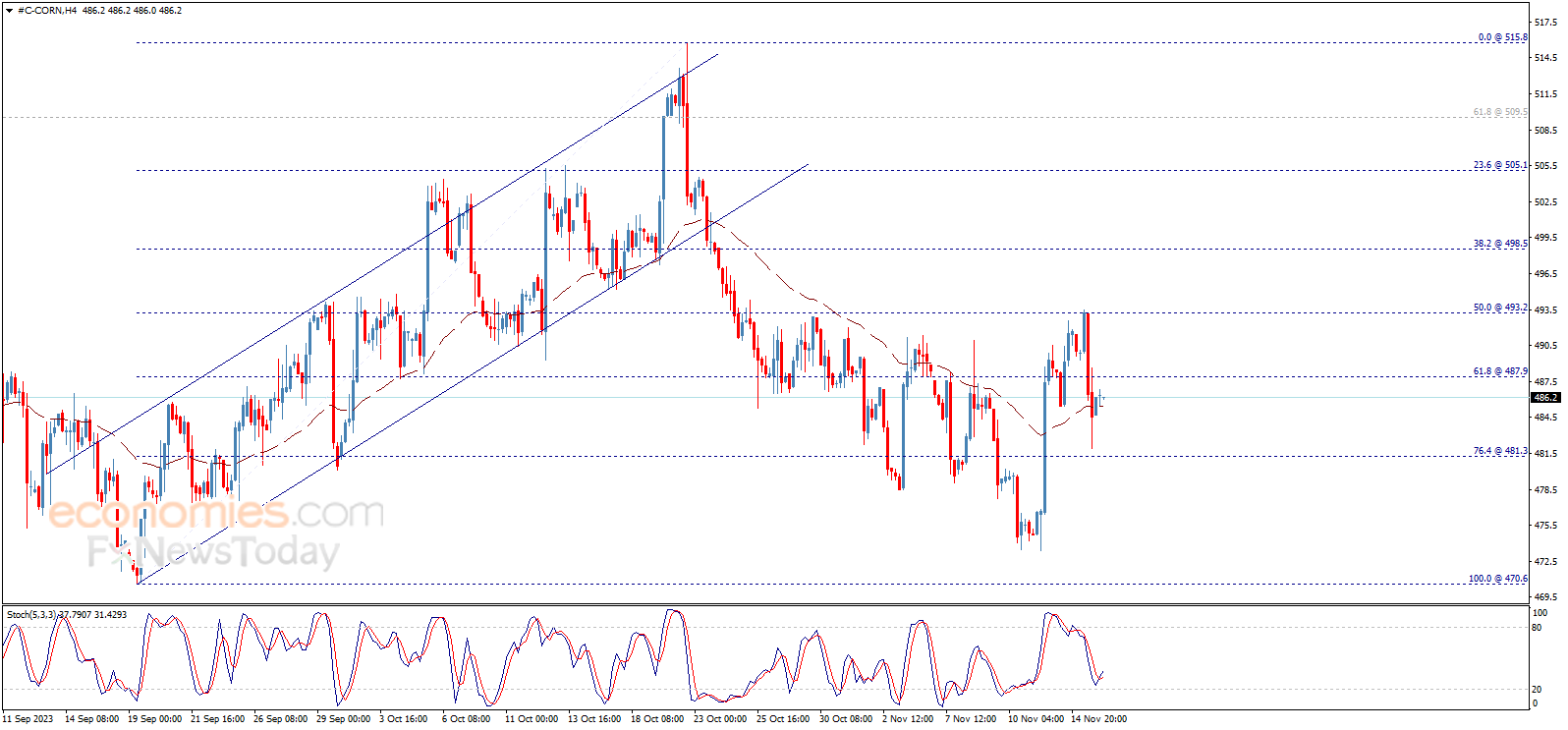لامس سعر الذرة هدفنا الأول المنتظر عند 493.20 وارتد هبوطاً بشكل قوي من هناك، ليصل إلى مناطق 481.30، ويواجه تعارضاً بين المؤشرات الفنية قد يجعل السعر يتحرّك ضمن نطاق جانبي بين المستويات المذكورة إلى أن يتمكن من تخطّي أحدهما ومن ثم تحديد وجهته التالية بشكل أوضح.