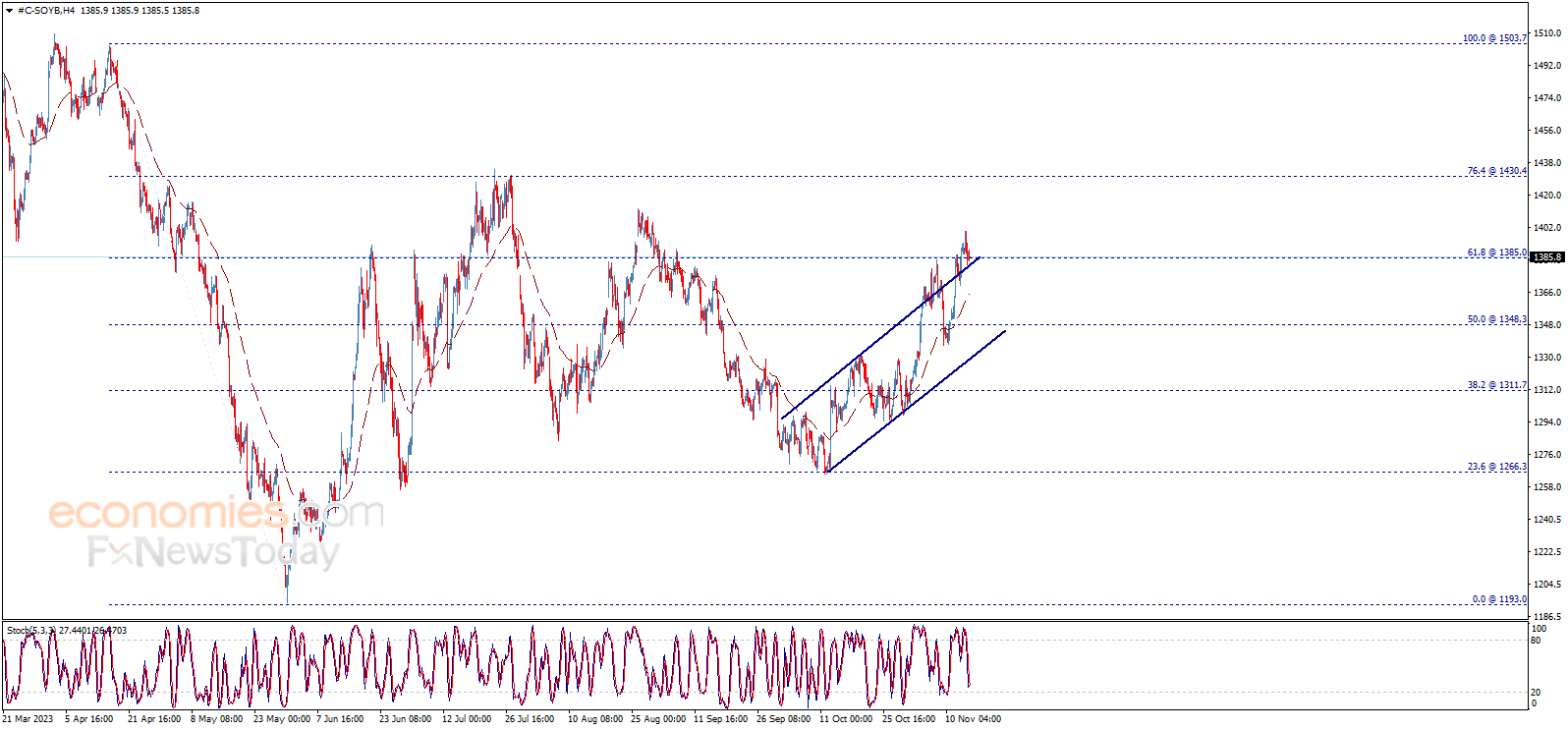 يحوم سعر فول الصويا حول مستوى 1385.00 ويتماسك فوقه، مع ملاحظة أن مؤشر ستوكاستيك يكتسب العزم الإيجابي بشكل ملحوظ، بينما يستمر المتوسط المتحرك 50 بتقديم الدعم الإيجابي للسعر.