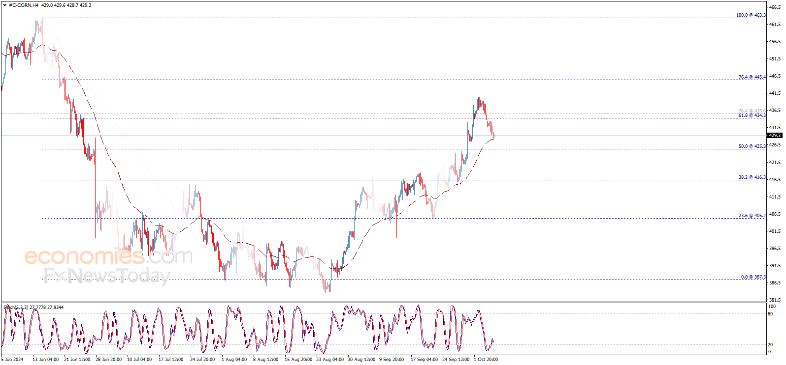 يظهر سعر الذرة مزيد من الميل الهابط ليختبر المتوسط المتحرك 50، ليبقى الاتجاه الهابط فعالاً على المدى اللحظي، مع التذكير بأن هدفنا المنتظر يتواجد عند 425.30$، والذي يمثّل كسره مفتاح امتداد الموجة الهابطة نحو 416.30$.