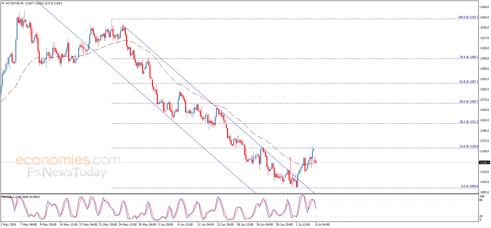 تمكّن سعر فول الصويا من ملامسة هدفنا المنتظر عند 1130.60$ ووجد مقاومة قوية هناك، ليبدأ اليوم بسلبية ويشير إلى التوجه لاستئناف الاتجاه الرئيسي الهابط، في طريقه لزيارة القاع المسجّل مؤخراً عند 1095.60$ كمحطة تالية.