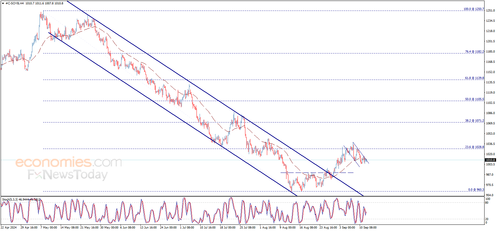 يتذبذب سعر فول الصويا ضمن نطاق ضيق منذ يوم أمس، ويستمر بالتحرّك داخل القناة اللحظية الهابطة، بانتظار استئناف الاتجاه الهابط الذي يستهدف مستويات 990.00$ ثم 960.30$ كمحطات رئيسية تالية.
