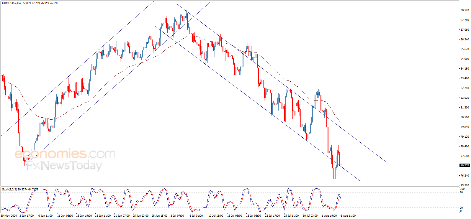 مؤشر ستوكاستيك يتقاطع بشكل سلبي ليعزز التوقعات بالانخفاض خلال الجلسات القادمة، مع التذكير بأهمية الثبات دون 78.50$ لتحقيق الأهداف المقترحة.