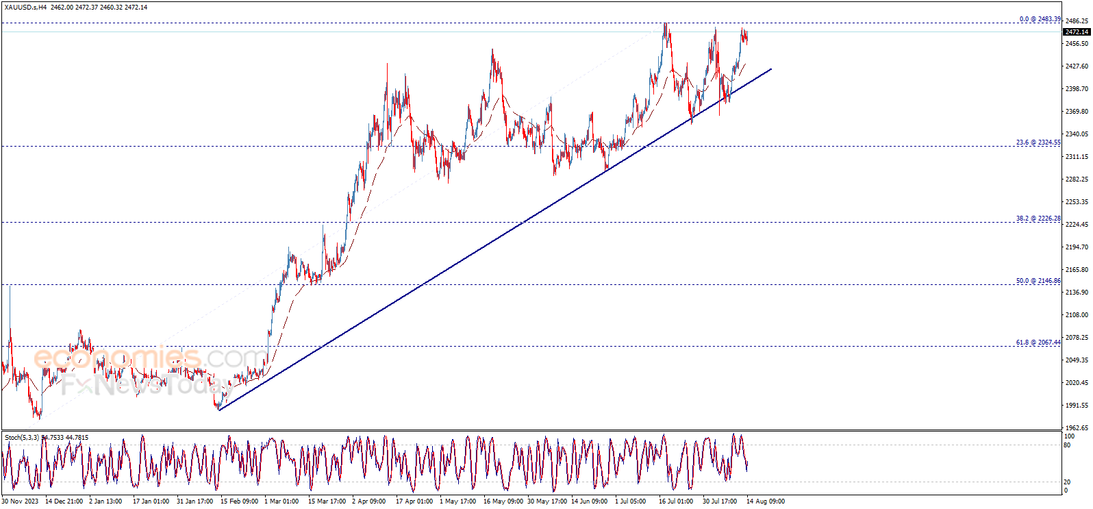 نطاق التداول المتوقع لهذا اليوم ما بين الدعم 2440.00$ والمقاومة 2475.00$