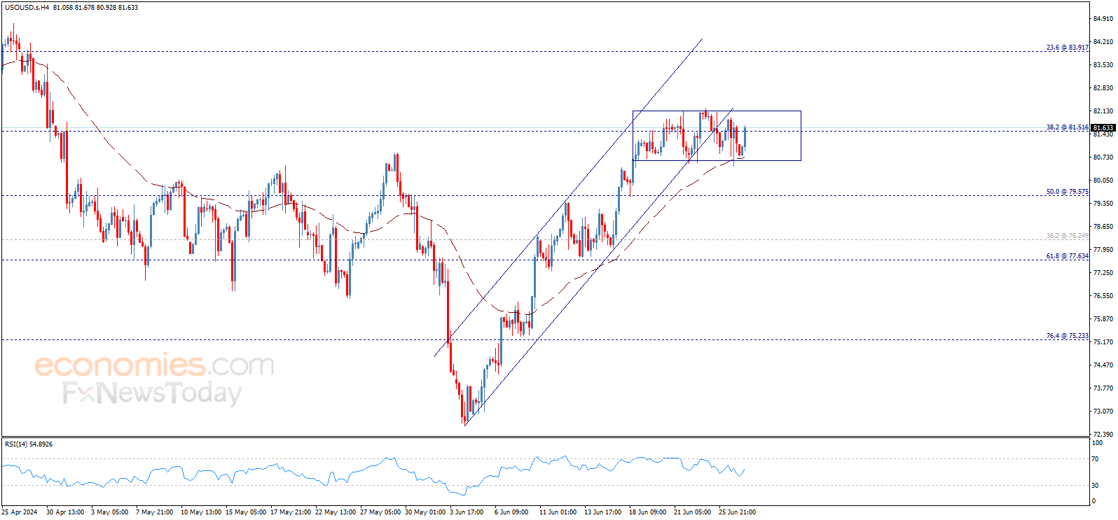 لكن حتى الآن، نحن مستمرون بترجيح الحركة الجانبية بين المقاومة المذكورة والدعم 80.60$ إلى أن يتمكّن السعر من تخطّي أحدهما لتحديد وجهته التالية بشكل أدق، مع التذكير بأن كسر هذا الدعم سيضغط على السعر للانخفاض واختبار مستوى 79.60$ قبل أي محاولة جديدة للارتفاع