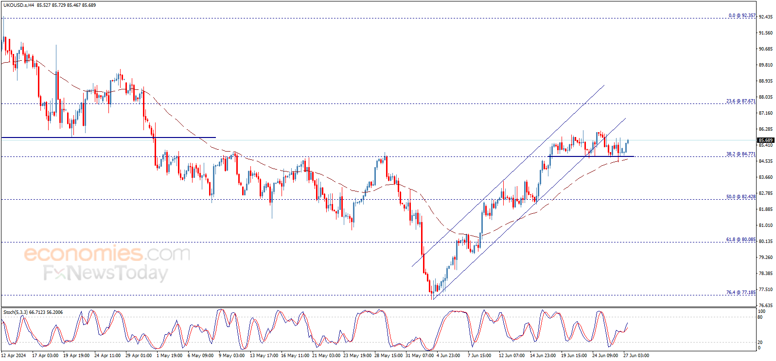 يظهر سعر عقود خام برنت مزيد من الميل الصاعد ليلامس حاجز 86.00$ دولار الآن، معززاً التوقعات باستمرار الاتجاه الصاعد بقية اليوم، والطريق مفتوح أمام مواصلة الارتفاع لتحقيق هدفنا الرئيسي المنتظر عند 87.67$.
