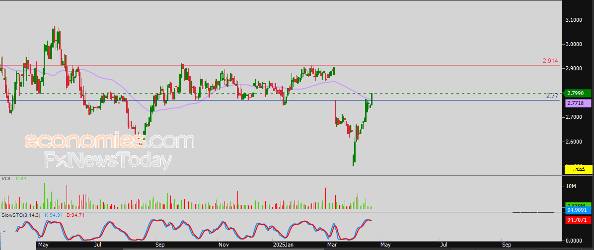 وعلى هذا الأساس فتوقعاتنا تشير إلى المزيد من الصعود لسعر السهم خلال تداولاته القادمة، خاصة في حالة استقراره أعلى سعر 2.77 ريال، ليستهدف مستوى المقاومة المحوري 2.914 ريال.