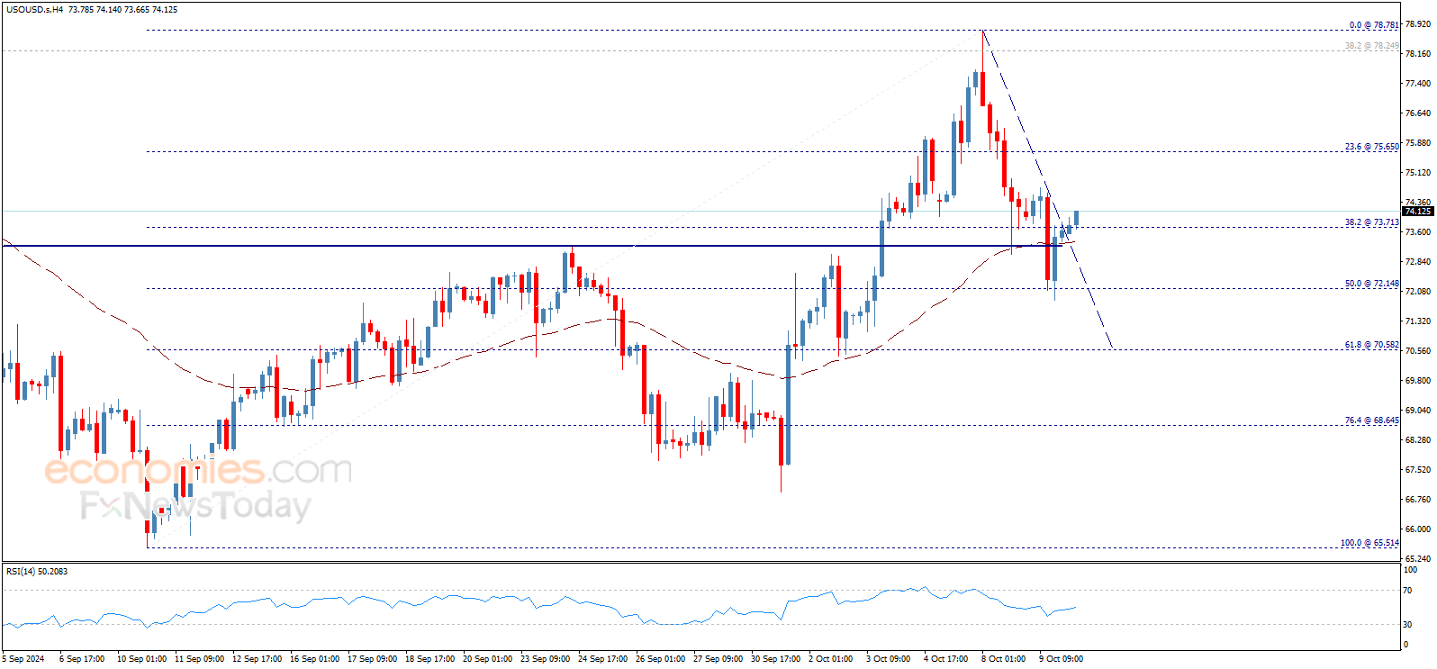 لذلك، سيكون الميل الصاعد متوقعاً لهذا اليوم، يدعمه التحرّك فوق المتوسط المتحرك 50، مع الانتباه إلى أن كسر 73.70$ والثبات دونه سيوقف الارتفاع المقترح ويضغط على السعر لإجراء مزيد من التصحيح الهابط على المدى اللحظي.