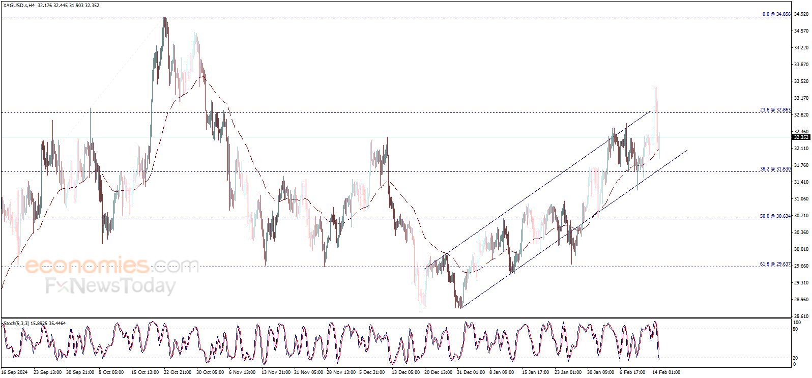 واجه سعر الفضة ضغط سلبي قوي يوم الجمعة الماضي ليتجاوز حاجز 32.00$، لكننا نلاحظ أن السعر يحاول التعافي الآن، حيث يحصل على دعم إيجابي جيد من المتوسط المتحرك 50، مع ملاحظة أن مؤشر ستوكاستيك اكتسب العزم الإيجابي على الإطار الزمني لأربع ساعات.