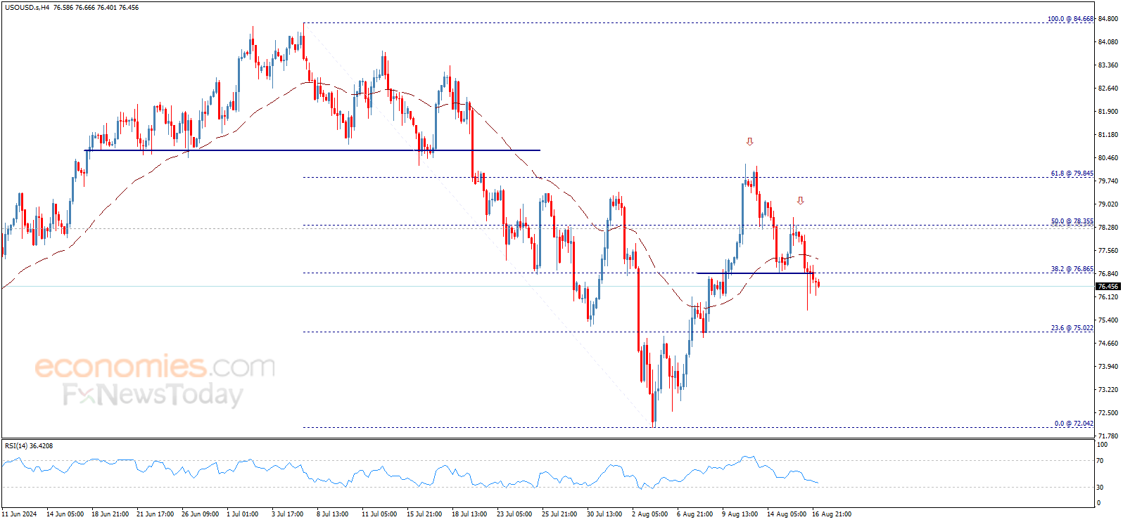 وبالتالي، نحن نتوقّع استمرار سيطرة الاتجاه الهابط خلال الجلسات القادمة، مع الإشارة إلى أن اختراق 76.86$ والثبات فوقه سيوقف السيناريو السلبي ويقود السعر للتعافي من جديد.