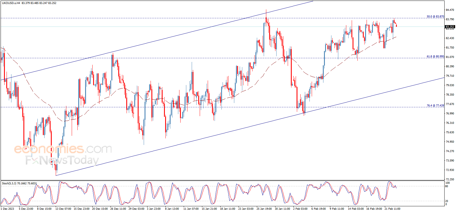 تمكّن سعر عقود خام برنت من ملامسة هدفنا المنتظر عند 83.87 وارتد هبوطاً من هناك، ليقدّم إشارات على التوجه لبناء موجة هابطة على المدى اللحظي، تستهدف زيارة مستويات 82.50 ثم 81.00 كمحطات رئيسية تالية.