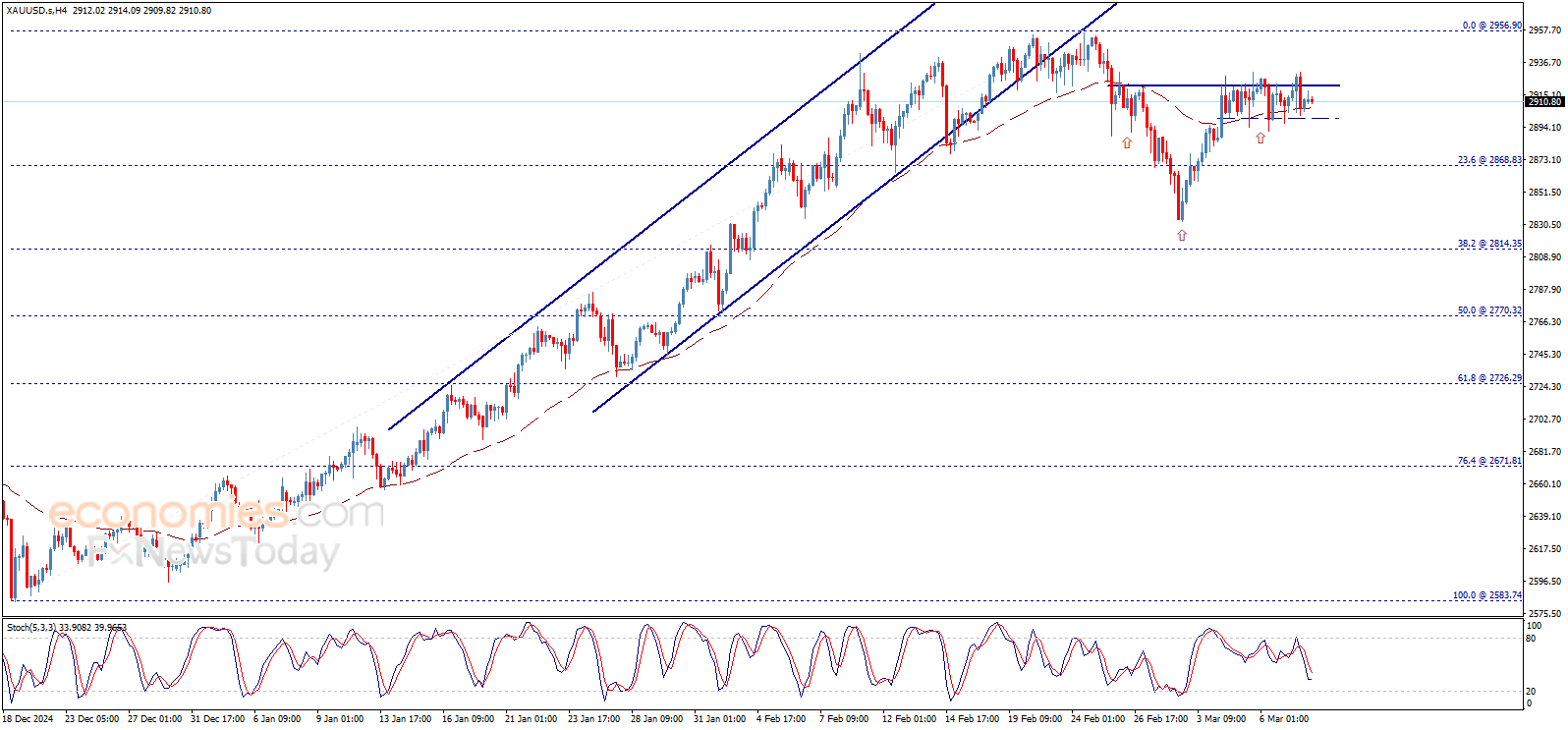 لا يزال سعر الذهب عالقاً بين المستويات المحورية التي تتمثّل بالدعم 2900.00$ والمقاومة 2920.00$، مما يبقي على موقفنا الحيادي قائماً حتى الآن، حيث ننتظر اختراق أحد هذين المستويين لتحديد الاتجاه التالي بشكل أدق.