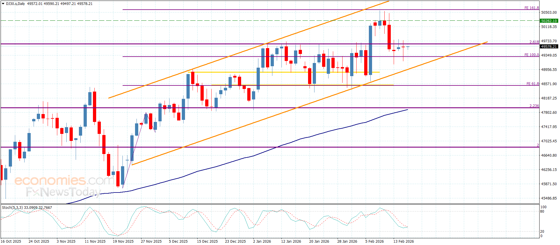 سعر مؤشر الداو جونز يقترب من الحاجز-توقعات اليوم 18-2-2026