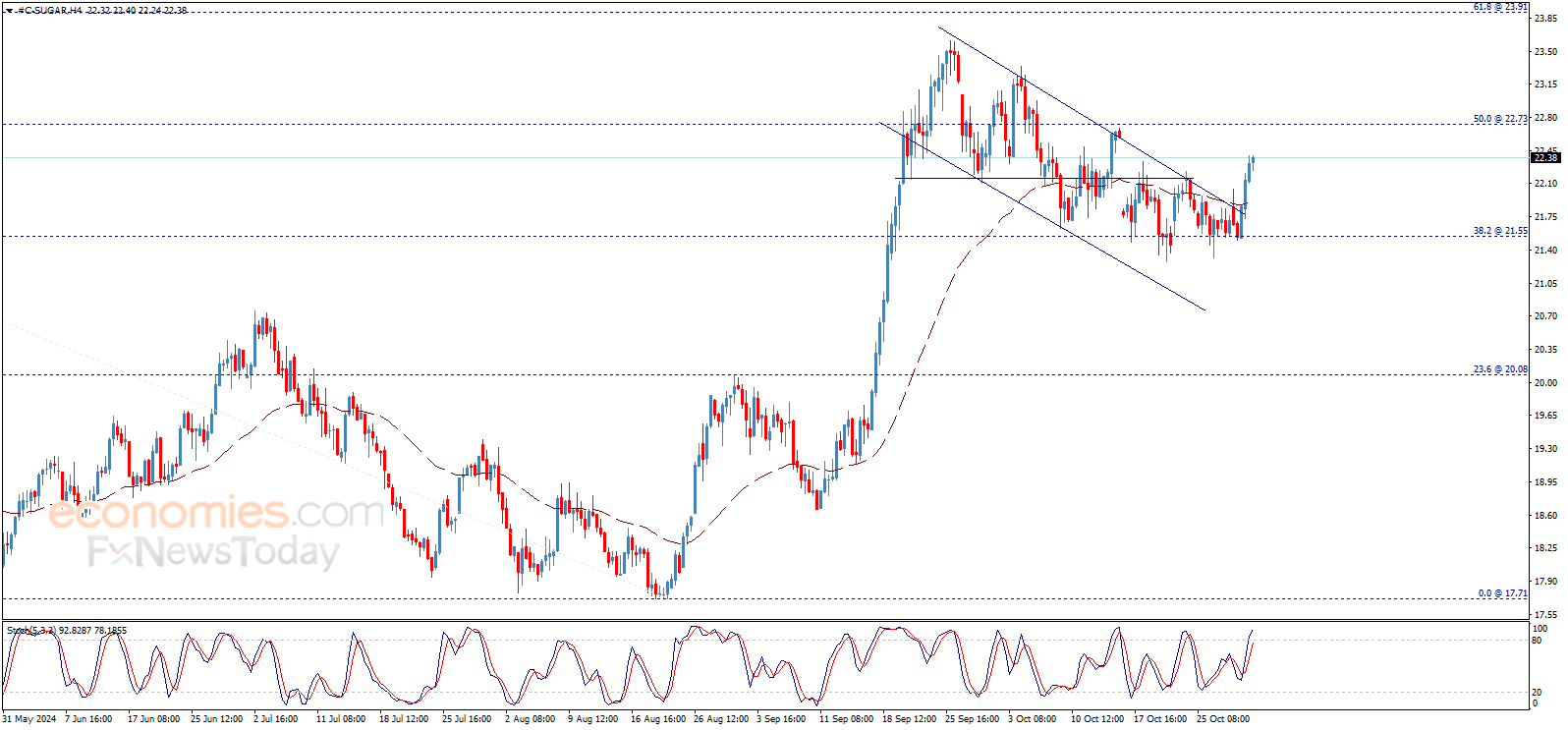 اندفع سعر السكر صعوداً بشكل قوي بعد التماسك فوق مستوى 21.55$، ليخترق مستوى 22.15$ ويتجه نحو تحقيق مكاسب متوقعة خلال الفترة القادمة، مستهدفاً مستوى 22.73$ مبدئياً، مع الإشارة إلى أن اختراق هذا المستوى سيمد الموجة الصاعدة لتصل إلى 23.35$ كمحطة إيجابية تالية.