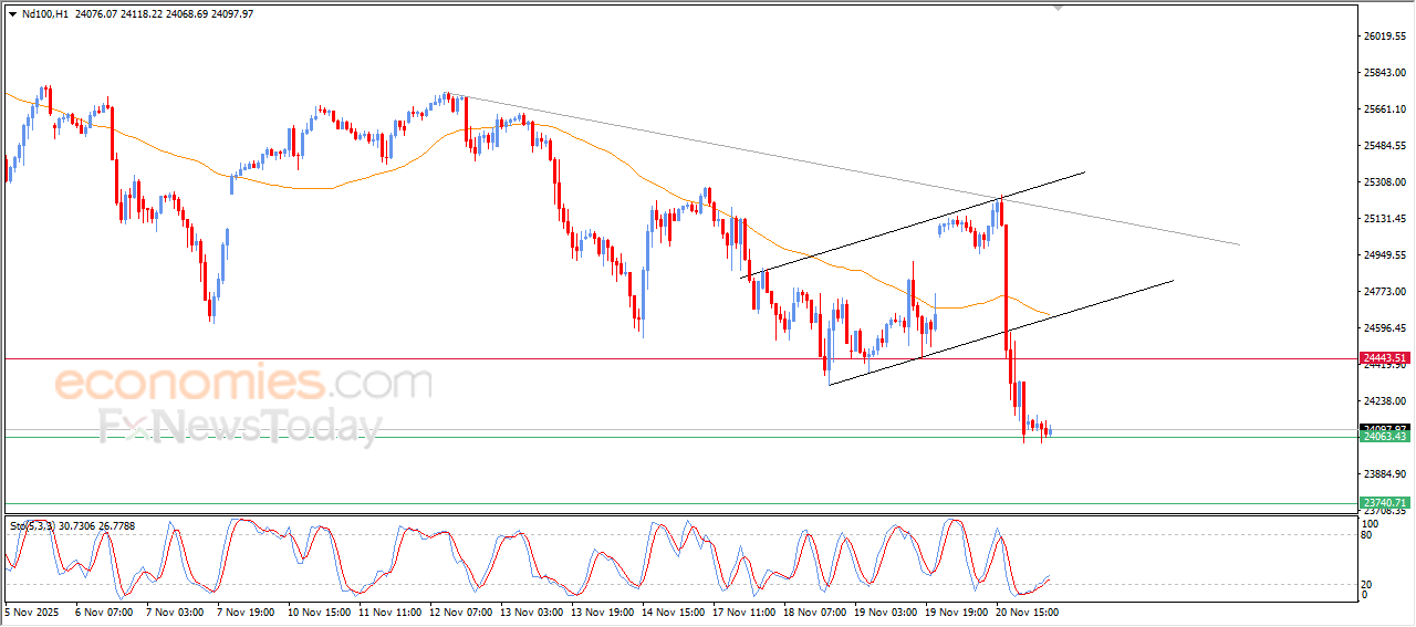 استقر مؤشر ناسداك 100 (Nasdaq 100) على انخفاض خلال تداولاته اللحظية الأخيرة، مستنداً إلى مستوى الدعم الحالي 24,060، في محاولة منه لتصريف تشبعه البيعي الواضح بمؤشرات القوة النسبية، خاصة مع توارد الإشارات الإيجابية منها، وهو ما أوقف بشكل مؤقت موجة خسائر حادة شهدها المؤشر بتحركاته السابقة، متأثراً بالضغط السلبي الناتج من تداولاته دون متوسطه المتحرك البسيط لفترة 50، مع تأثره بالخروج من نطاق قناة سعريه تصحيحية صاعدة على المدى القصير.