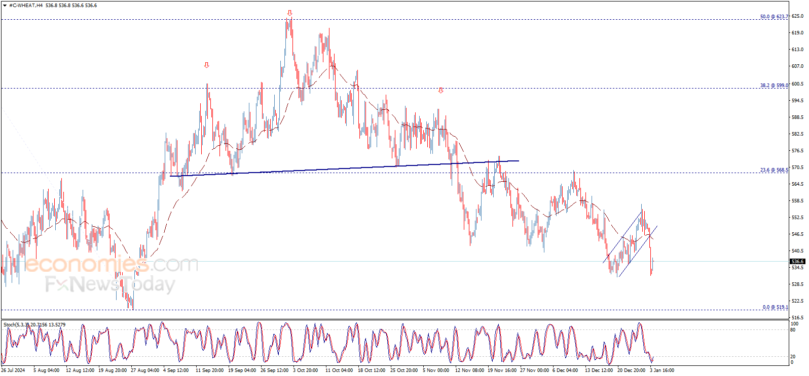 حقق سعر القمح كسراً قوياً لمستوى 545.70$ لينخفض بشكل ملحوظ ويوقف الموجة الصاعدة المقترحة في تقاريرنا الأخيرة، ليتجه نحو تحقيق أهداف سلبية تبدأ بزيارة القاع المسجّل مسبقاً عند 519.10$.