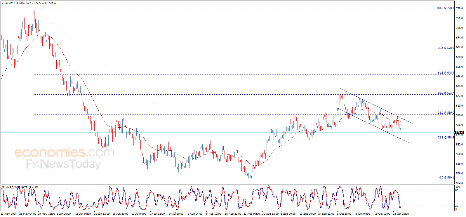 ارتدت تداولات سعر القمح هبوطاً بشكل ملحوظ في الجلسات الماضية بعد الاقتراب من مستوى 599.00$، ليصل إلى مشارف الهدف السلبي المنتظر عند 568.50$، ونرجّح كسر هذا المستوى لتحقيق أهداف سلبية إضافية تمتد إلى 555.60$.