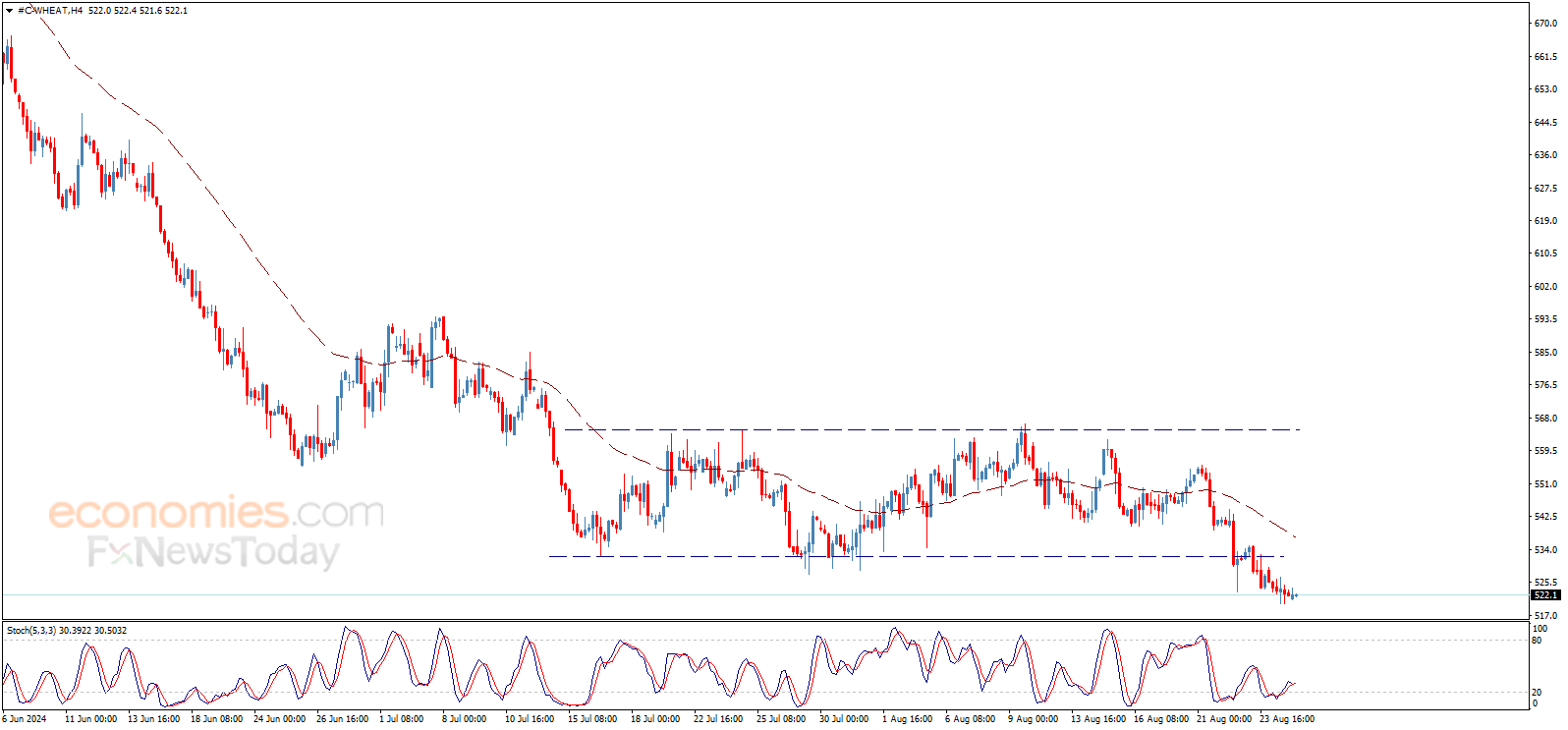 يظهر سعر القمح مزيد من الميل الهابط ليؤكد استمرار سيطرة الاتجاه الهابط على المدى اللحظي والقصير، بانتظار اختبار مستوى 495.00$ كهدف سلبي أول، والذي يمثّل كسره مفتاح التوجه نحو 470.00$ كمحطة تالية.