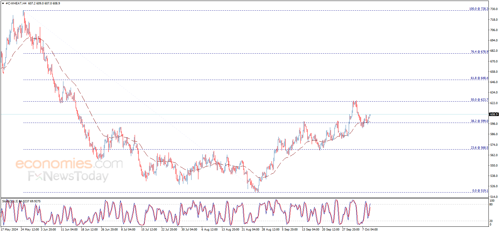 قدّم سعر القمح تداولات إيجابية في الجلسات الماضية ليستقر فوق مستوى 599.00$ من جديد، ليبدأ ببناء موجة صاعدة جديدة ويتجه نحو تحقيق مكاسب تبدأ باختبار مناطق 623.70$.