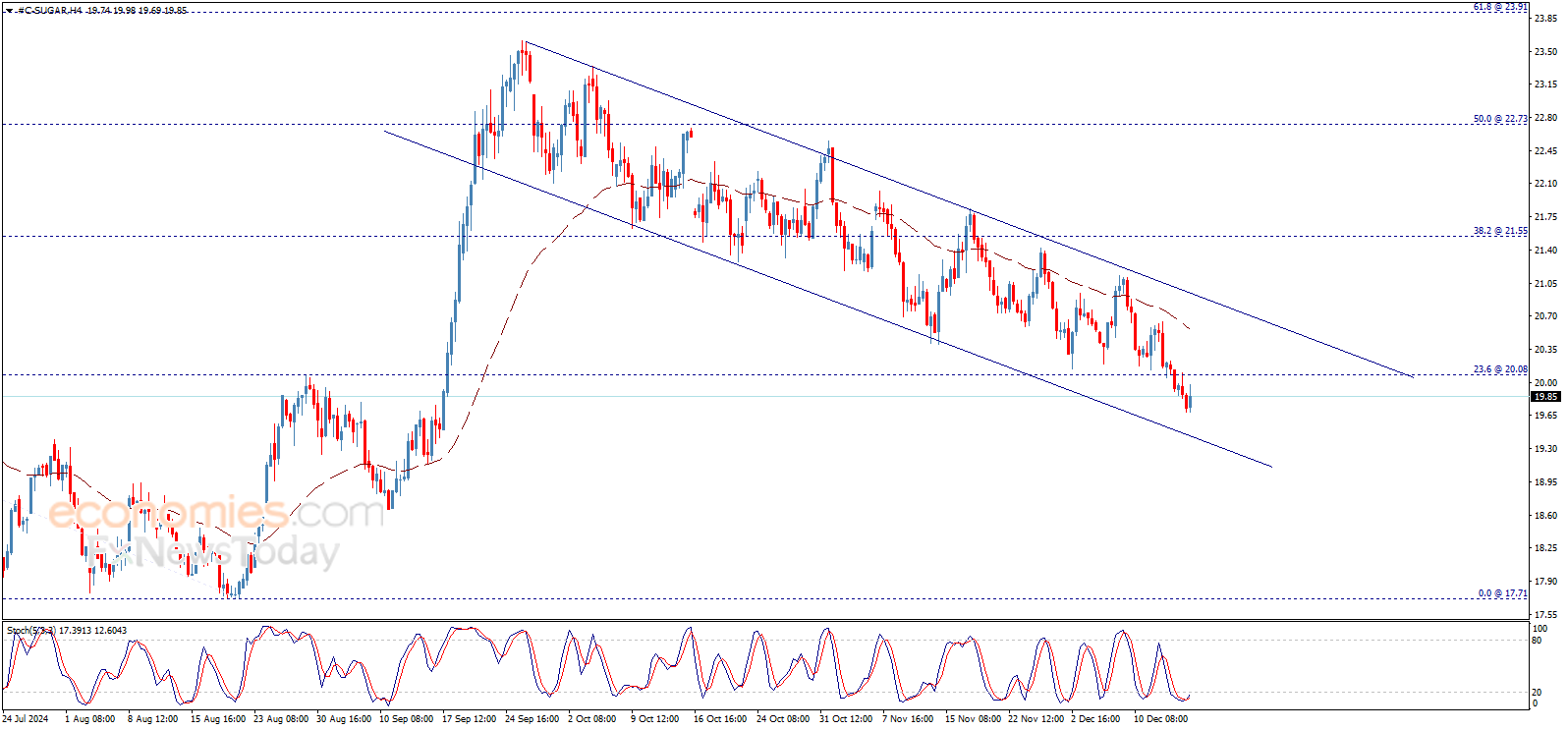 يظهر سعر السكر مزيد من الانخفاض ليبتعد عن مستوى 20.08$، ليدعم السيناريو السلبي المتوقع على المدى اللحظي والقصير، مع التذكير بأننا بانتظار اختبار مستوى 19.35$ كهدف تالي.