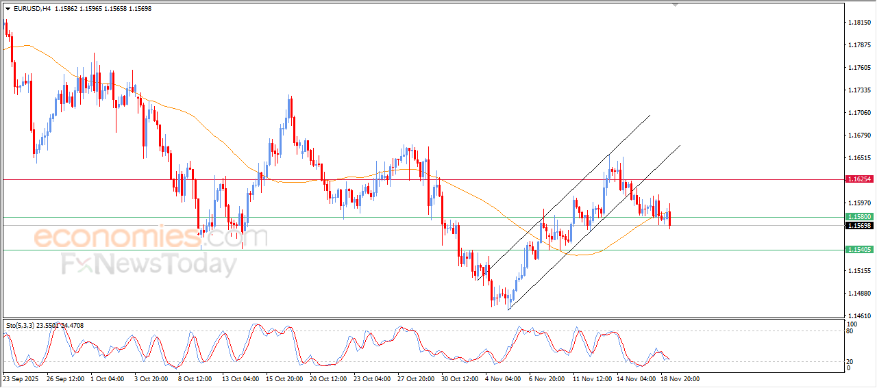 تراجع سعر اليورو مقابل الدولار الأمريكي (EURUSD) خلال تداولاته اللحظية الأخيرة، ليكسر مستوى الدعم المهم 1.1580، متأثراً بالضغط السلبي الناتج من تداولاته دون متوسطه المتحرك البسيط لفترة 50، مع تأثره بالخروج في وقت سابق من نطاق قناة سعريه تصحيحية صاعدة على المدى القصير، بالإضافة إلى ذلك نلاحظ توارد الإشارات السلبية بمؤشرات القوة النسبية.