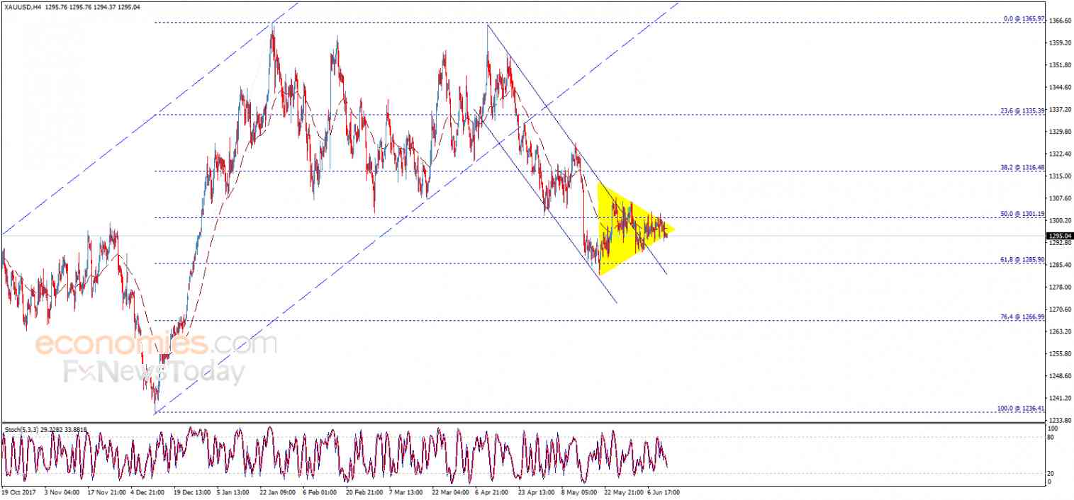 يبدأ سعر الذهب عملية كسر دعم نموذج العلم المثلثي الهابط، ويحتاج السعر لتأكيد كسر هذا المستوى للاندفاع نحو أهدافنا السلبية التي تبدأ عند 1285.90 ثم 1267.00.