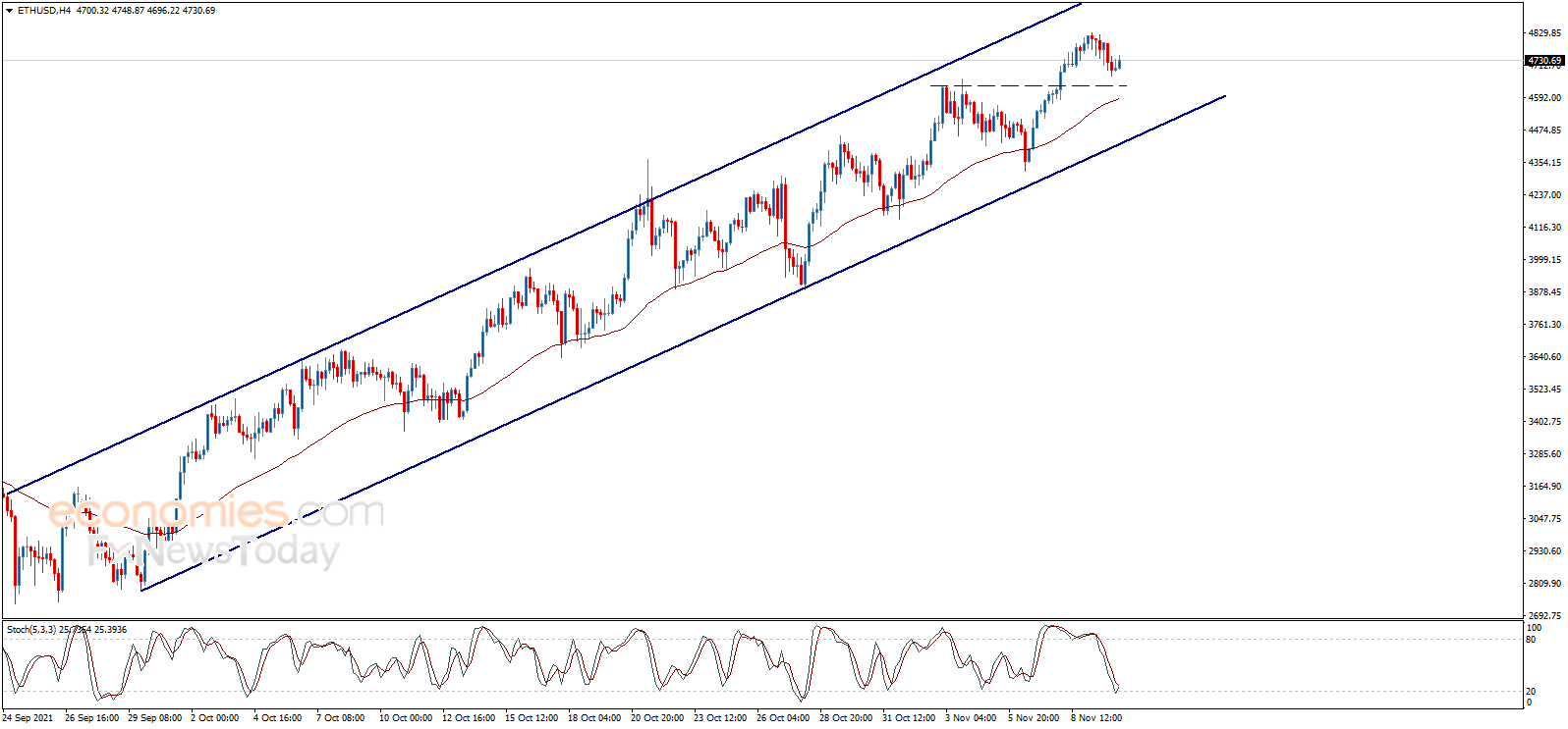 يستأنف سعر الإيثريوم (ETHUSD) تداولاته الإيجابية ليعزز التوقعات باستمرار الاتجاه الرئيسي الصاعد، تدعمه الإشارات الإيجابية التي يقدّمها مؤشر ستوكاستيك، بانتظار زيارة مستوى 4950.00 كهدف رئيسي تالي، مع التذكير بأهمية الثبات فوق مستوى 4635.00 لاستمرار الارتفاع المتوقع.
