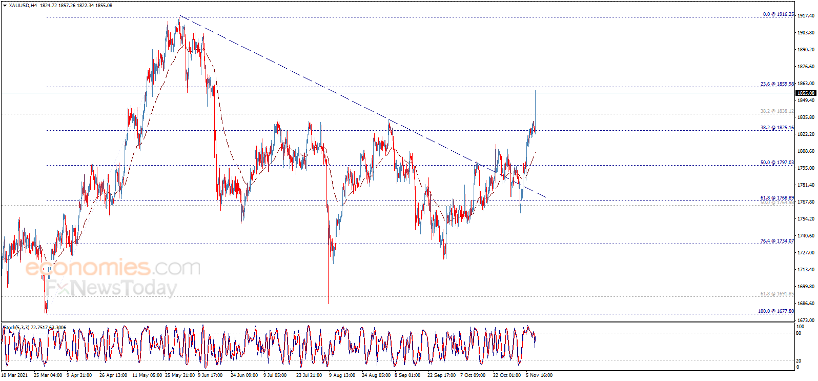 اندفع سعر الذهب صعوداً بشكل حاد ليصل إلى هدفنا المنتظر عند 1860.00، ويبدو المجال مفتوحاً أمام تحقيق مزيد من المكاسب خلال الفترة القادمة، مع الإشارة إلى أن اختراق هذا المستوى سيمد الموجة الصاعدة لتصل إلى مناطق 1900.00 كمحطة رئيسية تالية، بينما سيبقى الارتفاع المتوقع قائماً بشرط الثبات فوق 1825.15.