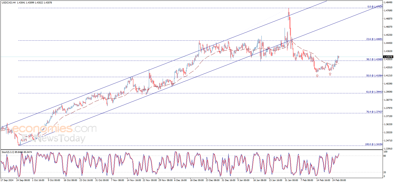 واصل سعر الدولار الأمريكي مقابل الدولار الكندي الارتفاع ليخترق مستوى 1.4268$ ويستقر فوقه، حيث تأثّر باكتمال قاع مزدوج تظهر ملامحه بالرسم البياني، والذي نتوقّع أن يدفع السعر لتحقيق مزيد من الارتفاع خلال الجلسات القادمة.