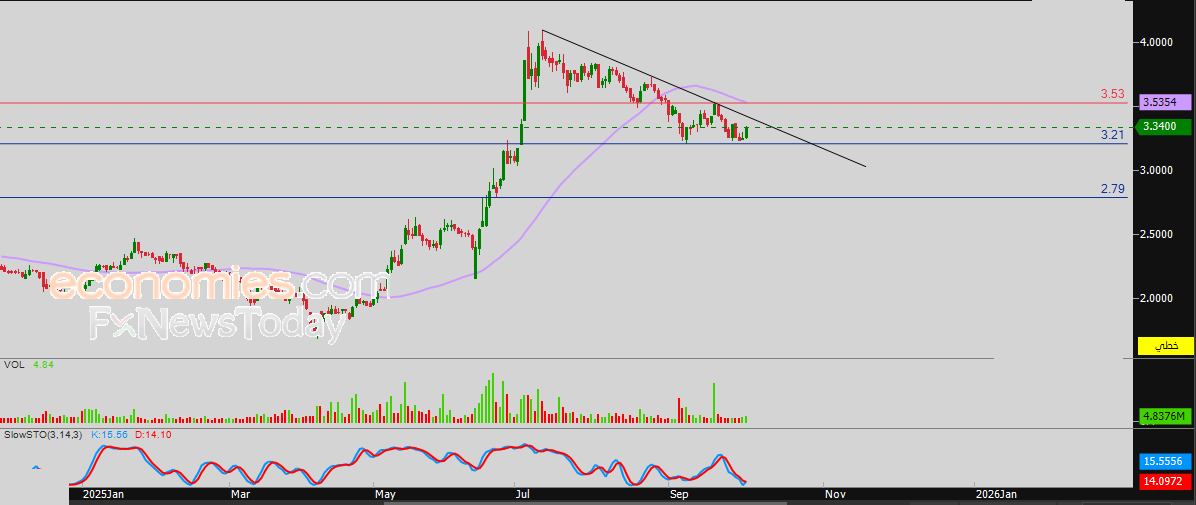 صعد سعر سهم بريسايت ايه اي هولدينغ بي ال سي (PRESIGHT) بتداولاته الأخيرة على المدى اللحظي، وذلك على اثر ثبات مستوى الدعم المحوري 3.21 درهم، ما أكسبه زخماً إيجابياً ساعده على تحقيق تلك المكاسب، والتي يحاول من خلالها تصريف البعض من تشبعه البيعي الواضح بمؤشرات القوة النسبية، خاصة مع بدء ظهور تقاطع إيجابي بها، في ظل استمرار الضغط السلبي نتيجة تداولاته دون متوسطه المتحرك البسيط لفترة 50 يوماً السابقة، وتحت سيطرة موجة تصحيحية هابطة على المدى القصير وتداولاته بمحاذاة خط ميل داعم لهذا المسار.
