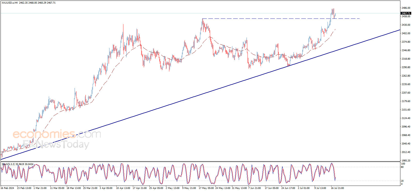 نطاق التداول المتوقع لهذا اليوم ما بين الدعم 2450.00$ والمقاومة 2490.00$