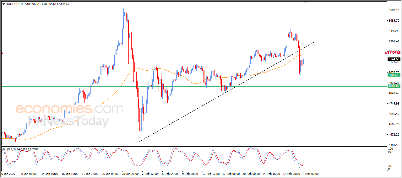 نطاق التداول المتوقع لهذا اليوم ما بين الدعم 5,000$ ومستوى المقاومة 5,200$.