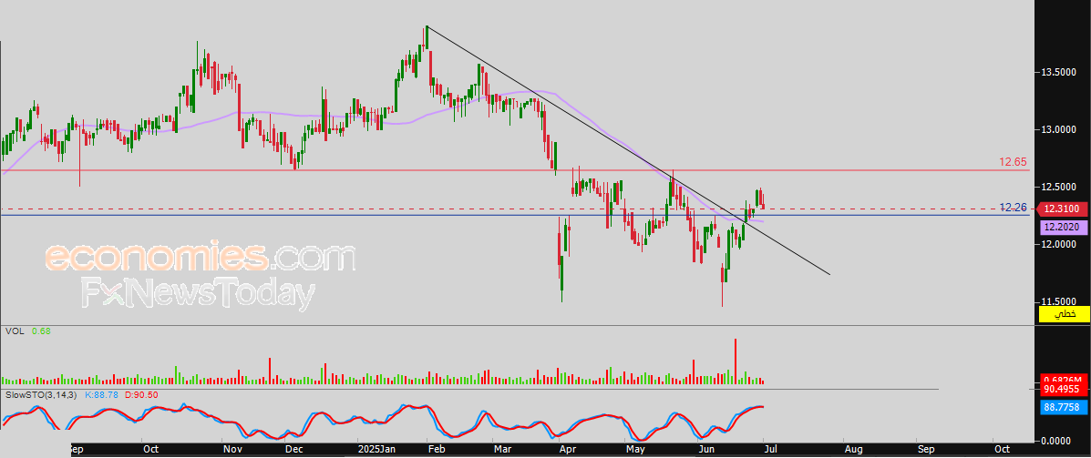 لهذا تشير توقعاتنا إلى صعود سعر السهم خلال تداولاته القادمة، خاصة طيلة استقراره أعلى الدعم 12.26 ريال، ليستهدف مستوى المقاومة المحوري 12.65 ريال.