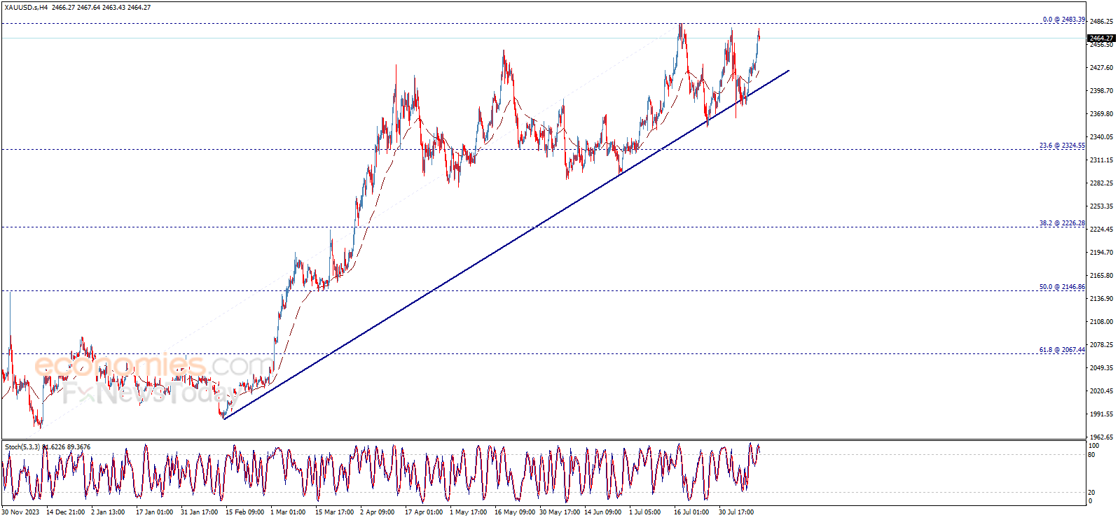 نطاق التداول المتوقع لهذا اليوم ما بين الدعم 2440.00$ والمقاومة 2480.00$