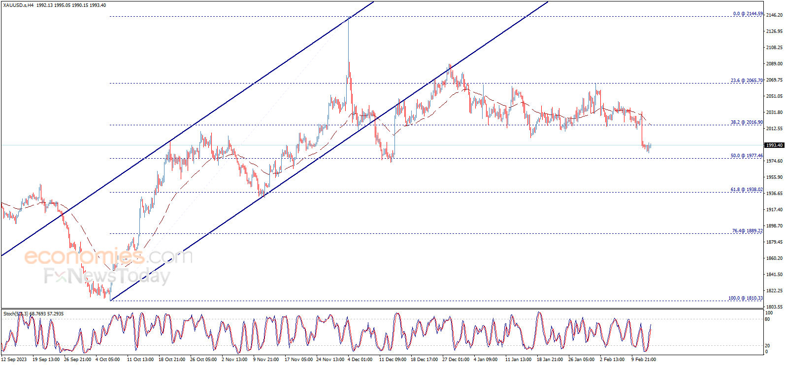 واصل سعر الذهب الانخفاض ليقترب من هدفنا المنتظر عند 1977.46، ويظهر تداولات ضيقة النطاق منذ مساء يوم أمس، مع ملاحظة أن مؤشر ستوكاستيك يفقد عزمه الإيجابي بشكل واضح، بانتظار الحصول على حافز سلبي يساهم بدفع السعر لاستئناف التداولات السلبية وتجاوز المستوى المذكور لفتح الطريق أمام امتداد الموجة التصحيحية الهابطة نحو مناطق 1938.00.
