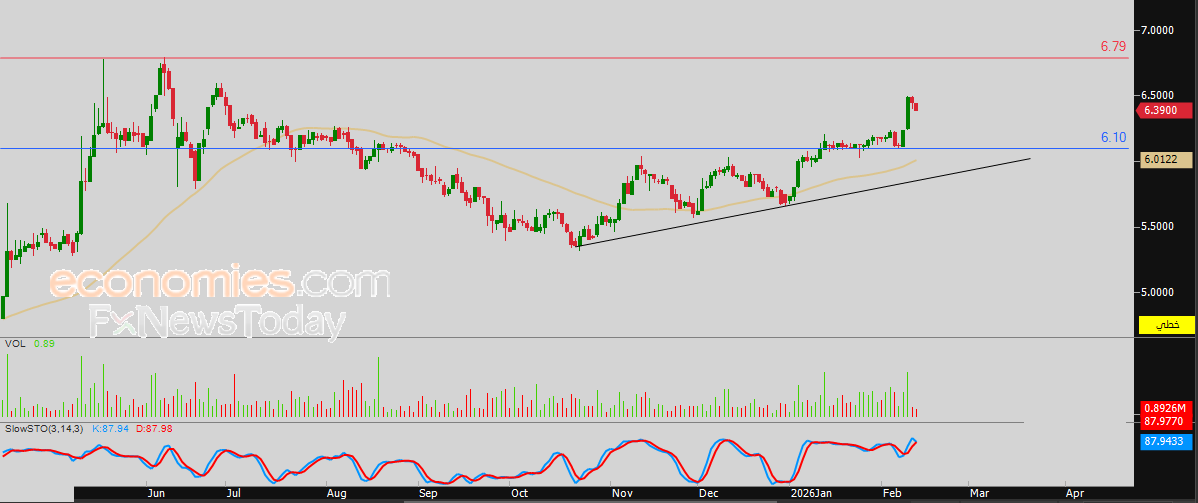 لذلك فتوقعاتنا تشير إلى صعود سعر السهم خلال تداولاته القادمة، طيلة ثبات مستوى الدعم 6.10 درهم، ليستهدف مستوى المقاومة المحوري 6.75 درهم.