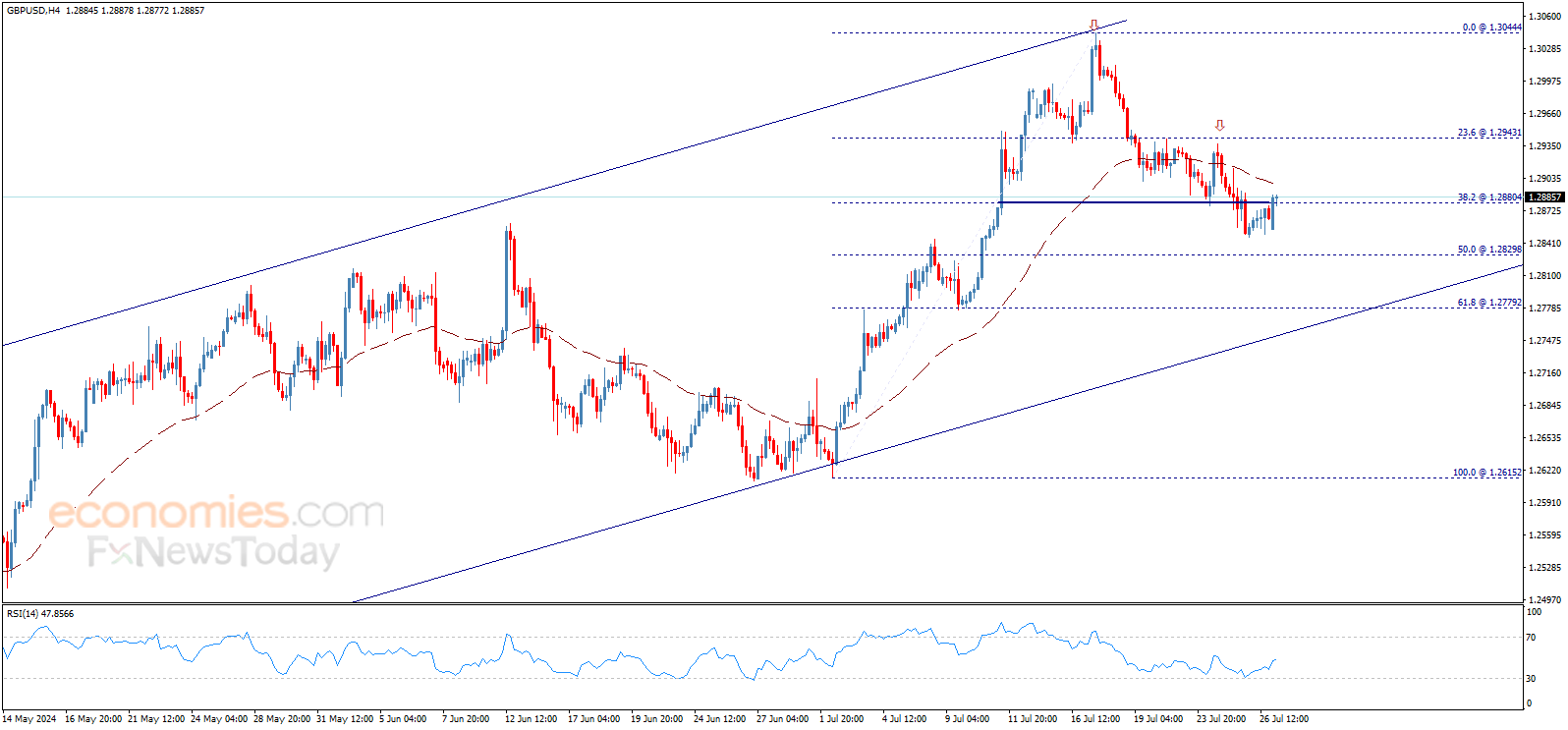 المتوسط المتحرك 50 يدعم استمرار الموجة الهابطة المتوقعة، في حين إن التماسك فوق 1.2880$ سيقود السعر لتحقيق مزيد من المكاسب ومحاولة العودة إلى المسار الرئيسي الصاعد من جديد.