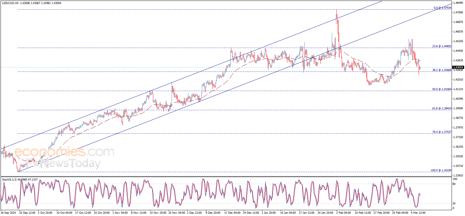 تمكّن سعر الدولار الأمريكي مقابل الدولار الكندي من تحقيق هدفنا المنتظر عند 1.4268$ ووجد دعم قوي هناك، مع ملاحظة أن مؤشر ستوكاستيك يفقد عزمه الإيجابي بشكل تدريجي، بانتظار تحفيز السعر على كسر هذا المستوى وفتح الطريق إمام إجراء مزيد من التصحيح الهابط.