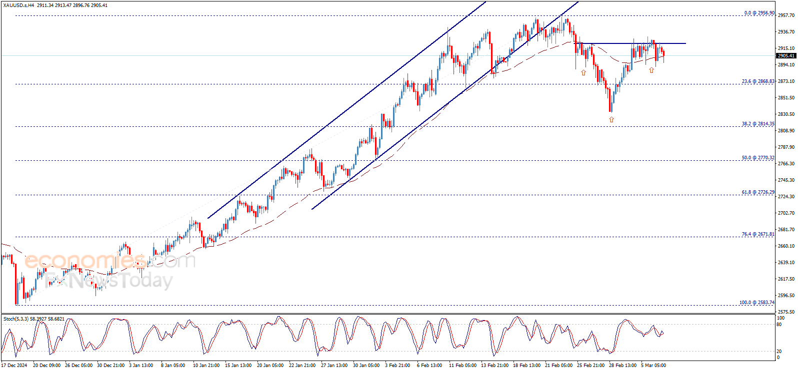 يظهر سعر الذهب تداولات جانبية منذ يوم أمس، ووجد دعم قوي حول 2900.00$ منع السعر من تكبّد مزيد من الخسائر، ليعلق بين هذا الدعم والمقاومة 2920.00$، لتشكّل مفاتيح الاتجاه التالي على المدى اللحظي، حيث يحتاج السعر لاختراق أحد هذين المستويين لتحديد وجهته التالية بشكل أدق.