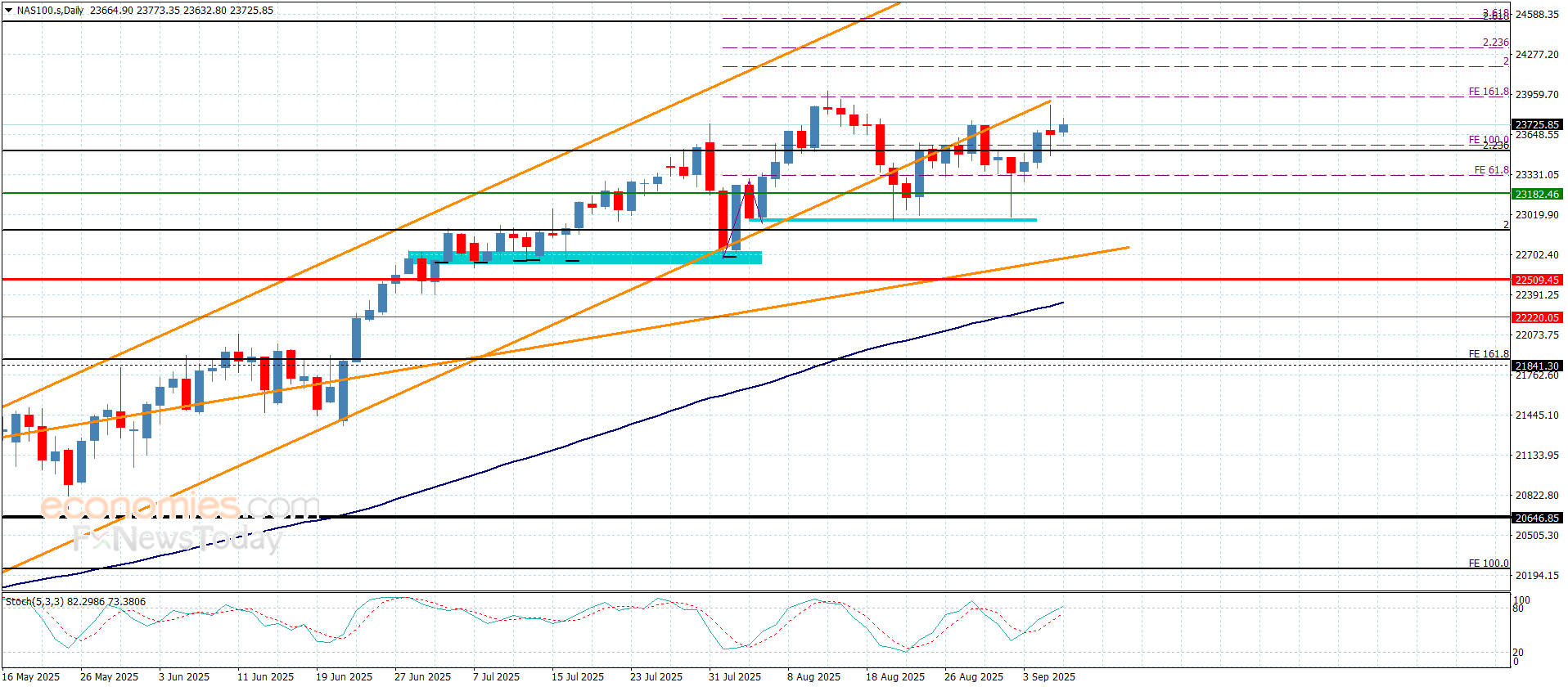 نطاق التداول المتوقع لهذا اليوم ما بين 23330.00 و 23780.00