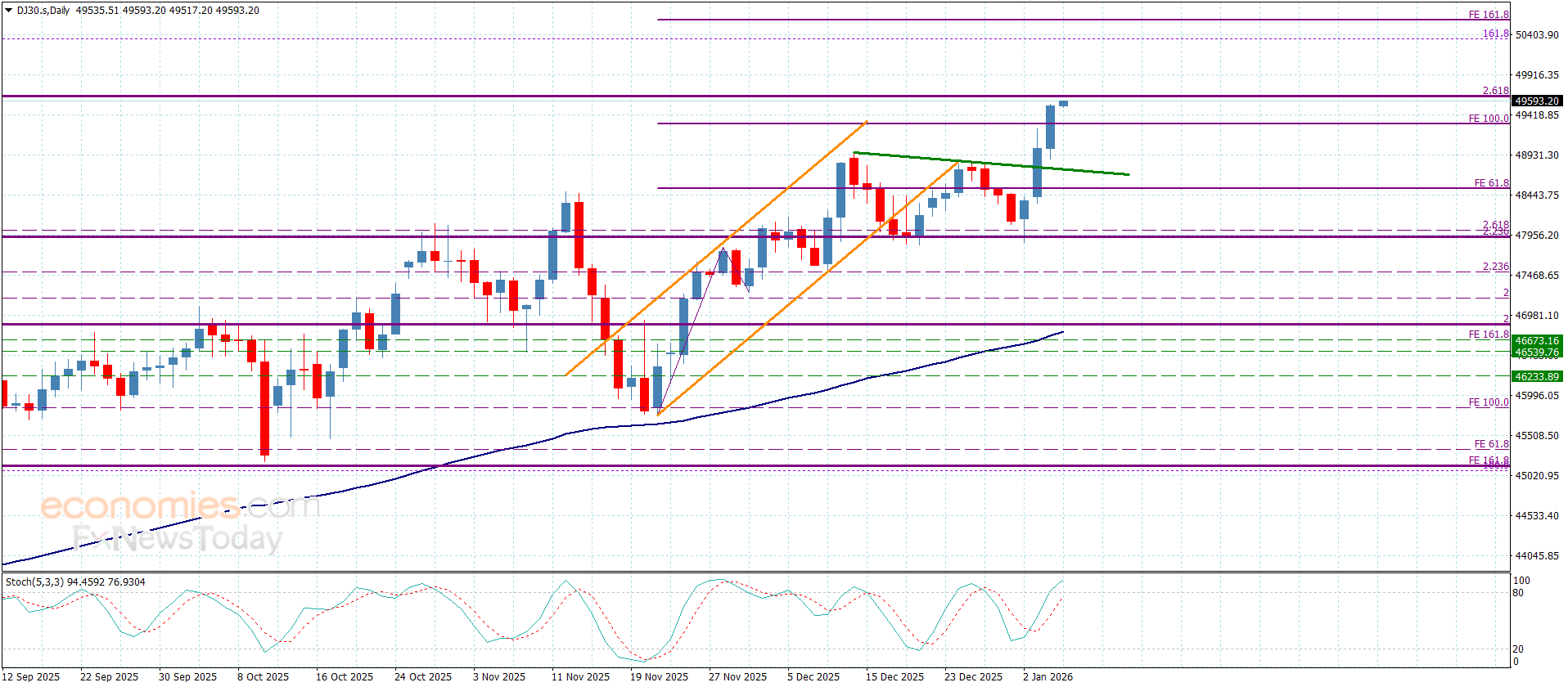 سنعتمد حاليا على تشكيل مستوى 49320 لدعم إضافي جديد ليعزز ذلك فرص تفاعل السعر مع إيجابية المؤشرات الرئيسية ليحاول تسجيل مكاسب تاريخية جديدة بتجاوزه لمستوى 49645 وصولا نحو الحاجز النفسي المستقر عند 50000.
