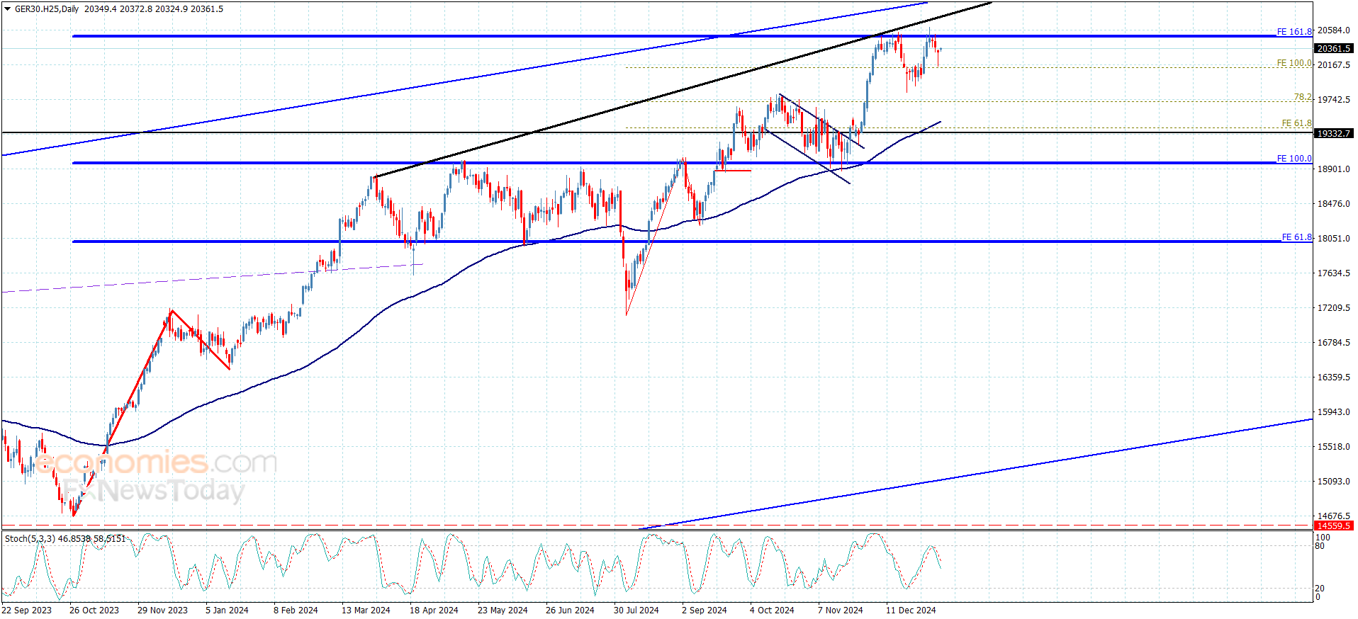 لامس سعر المؤشر يوم أمس الهدف التصحيحي الأول المستقر عند 20140.00 ليشكل ذلك دعم إضافي وليمكنه من تجديد المحاولات الصاعدة لنلاحظ اندفاعه حاليا نحو 20360.00.