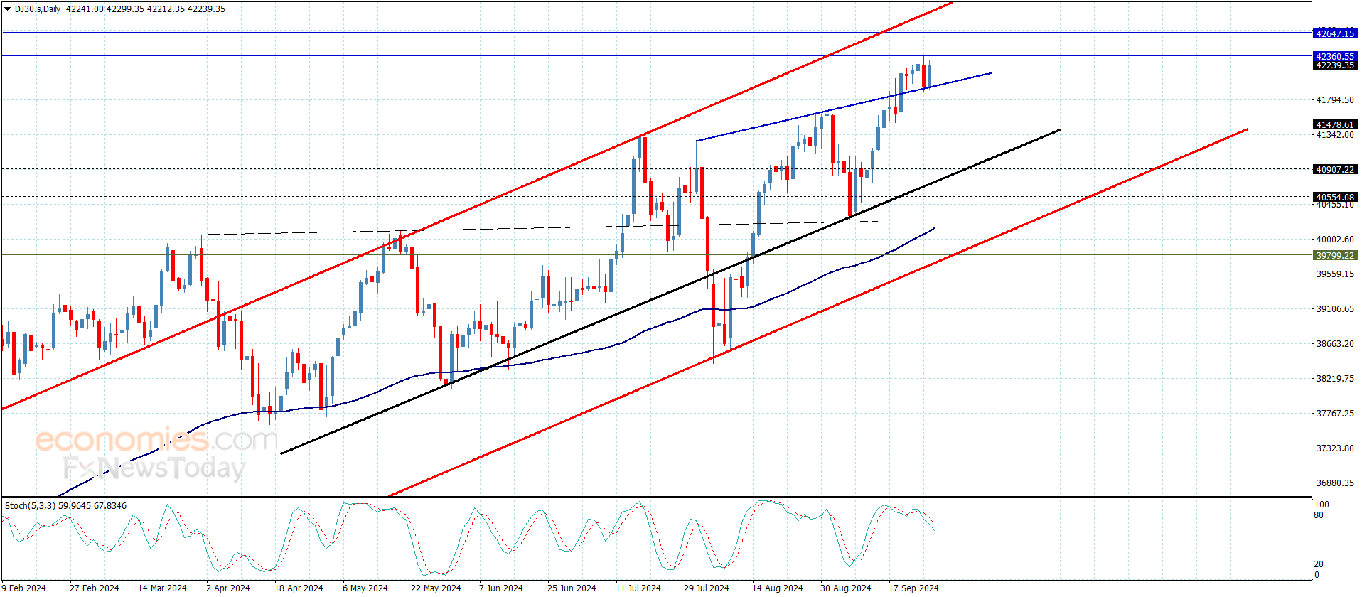 بالرغم من تمركز سعر المؤشر يوم أمس فوق الدعم الإضافي الممتد نحو 41980 إلا أن افتقاره للعزم الإيجابي يجبره على تقديم تداولات جانبية بتذبذبه المتكرر دون القمة المستقرة عند 42370.
