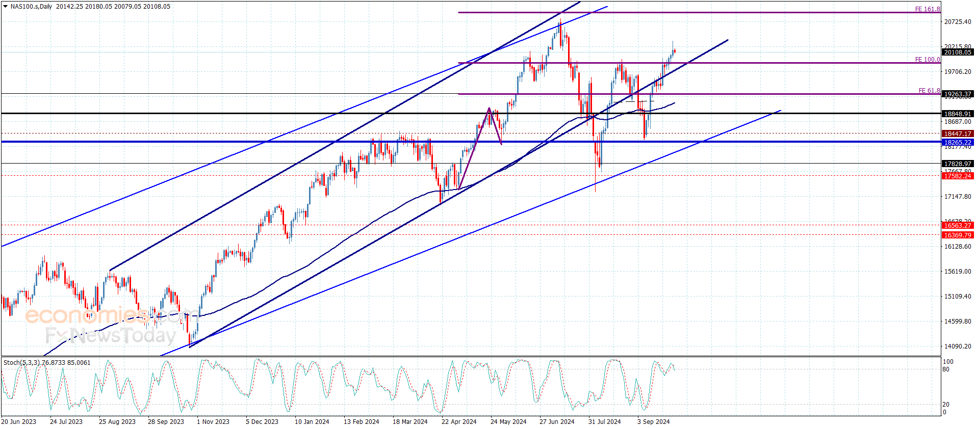 شكّل سعر المؤشر بتداولات يوم أمس اندفاع صاعد جديد ليقترب من الهدف الرئيسي الثاني المتمركز عند 20380.00 ومن ثم ليضطر لتشكيل ارتداد تصحيحي نحو 20120.00 متأثرا بمحاولة خروج مؤشر ستوكاستيك من مستوى تشبع الشراء كما هو واضح بالرسم المرفق.