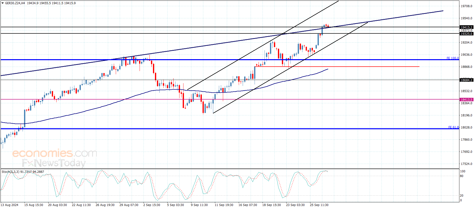 سنعتمد حاليا على تشكيل مستوى 19325.00 لقاعدة دعم جديدة لنتوقع باستمرار تقديم المؤشرات الرئيسية للعزم الإيجابي، استئناف الهجوم الصاعد ليستهدف السعر بذلك لمستوى 19565.00 وصولا لمقاومة القناة الفرعية الصاعدة والممتدة نحو 19700.00.