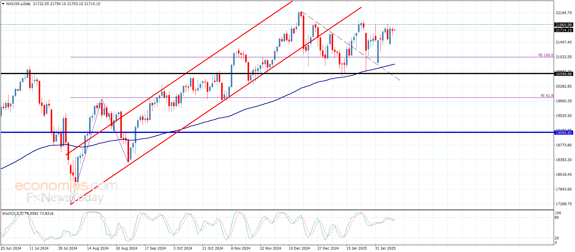 أما اختراق السعر للمقاومة الحالية والثبات فوقها، فإن ذلك سيفعّل المسار الصاعد من جديد ليستهدف بشكل أولي لمستوى 21960.00 وصولا للقمة التاريخية المتمثلة بمستوى 21200.00.