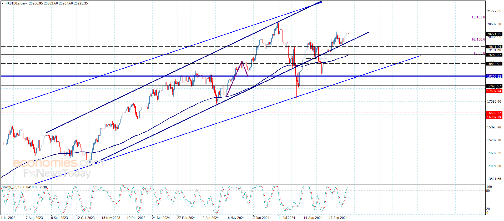 لامس سعر المؤشر باندفاعه الصاعد الأخير مستوى 20330.00 ليشكل ذلك عائق إضافي أمام المحاولات الصاعدة ليضطر لتشكيل ارتداد سلبي ليستقر حاليا قرب 20200.00.