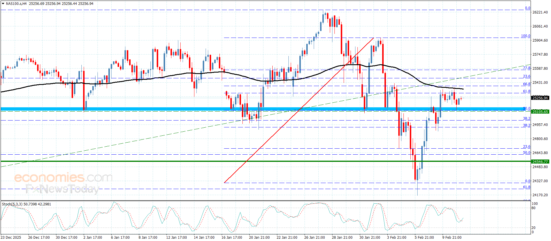 نطاق التداول المتوقع لهذا اليوم ما بين 25100.00 و 25580.00