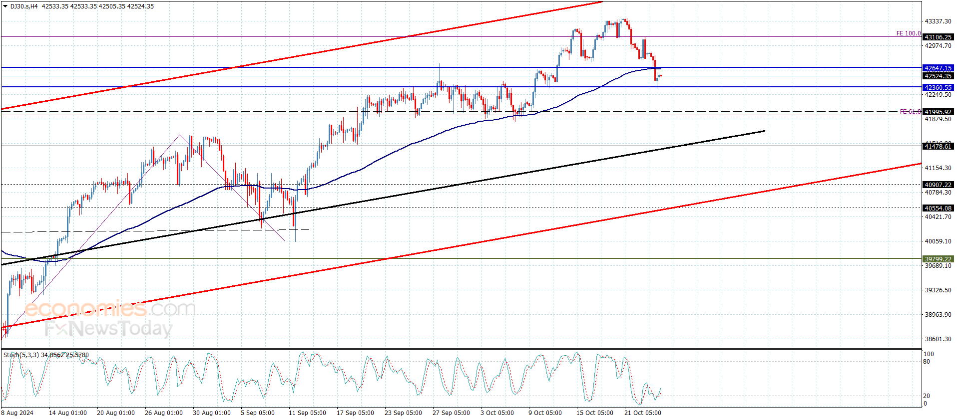 واصل سعر المؤشر بتداولات يوم أمس تشكيله لموجات تصحيحية سلبية متكبدا خسائر كبيرة بتسلله دون مستوى 42650 ليختبر بذلك الدعم الإضافي المتمركز عند 42360 وليستقر أعلاه كما هو واضح بالرسم المرفق.